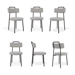 Kit 6 Cadeiras Ster de Jantar Linho Cinza - Vallisa Decor - Cinza | Preto