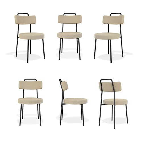 Kit 6 Cadeiras Ster de Jantar Linho Gengibre - Vallisa Decor - Preto | Bege