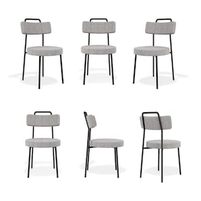 Kit 6 Cadeiras Ster Estofada em Linho Cinza para Sala de Jantar - Vallisa Decor