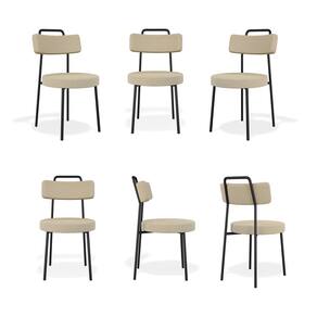 Kit 6 Cadeiras Ster Estofada em Linho Gengibre para Sala de Jantar - Vallisa Decor - Preto | Bege