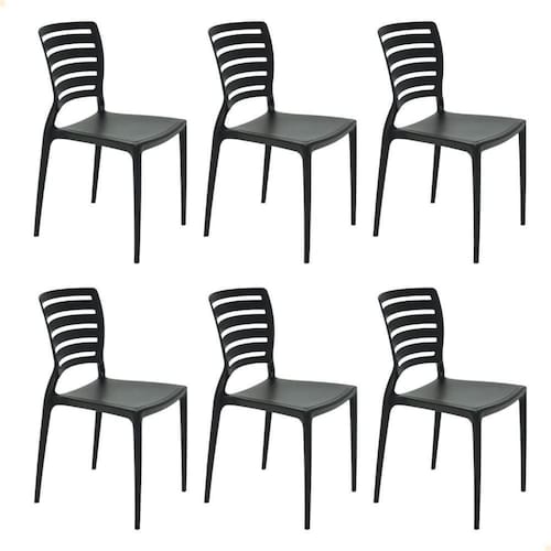 6 Un - Cadeira Tramontina Summa Sofia em Polipropileno e Fibra de Vidro Preto com Encosto Horizontal 92237009