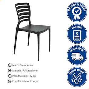 - Com a cadeira Tramontina Sofia em polipropileno e fibra de vidro preta com encosto horizontal você tem o item ideal para completar sua casa e garantir ambientes encantadores e confortáveis.