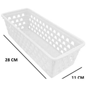 Kit 6 Caixa Multiuso Comprido Retangular Branco 0694 Uninjet Cesto Multiuso Comprido Retangular Branco 0694 Uninjet Cestos organizadores nunca são demais, não é mesmo Temos sempre alguma coisa a mais para guardar. Os cestos Multiuso Uninjet, são muito charmosos e discretos. Podem ser em armários de cozinha, gavetas, guarda roupas e até mesmo para decoração de banheiro, com as toalhas enroladinhas, ou com os produtos de higiene pessoal e rolos de papel higiênico. MEDIDAS Altura: 8,00cm Largura: 11,00cm Comprimento: 28,00cm Marca: Não Informado