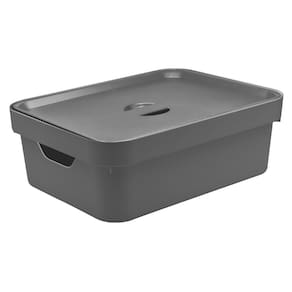 - 06 Caixa Plástica Organizadora Uo Cube Tamanho Médio 10,5 Litros Cinza