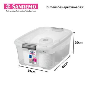 Kit 6 Caixas Organizadora Multiuso 20 litros Sanremo Kit 6 Caixas Organizadora Multiuso 20 litros Sanremo A Caixa Organizadora Multiuso 20 litros Sanremo é a solução perfeita para quem busca praticidade e eficiência na organização dos espaços. Com um design moderno e funcional, esta caixa organizadora é ideal para armazenar uma variedade de itens, mantendo tudo em ordem e facilmente acessível. Características Principais: Capacidade Generosa: Com uma capacidade de 20 litros, a caixa oferece amplo espaço para armazenar diversos tipos de objetos, desde mantimentos e material de limpeza e higiene, a brinquedos pequenos e até ferramentas e materiais de escritório. Material Durável: Fabricada em polipropileno de alta qualidade, a caixa é resistente e durável, suportando o uso diário e protegendo os itens armazenados. Transparência Prática: A caixa possui um corpo transparente, permitindo visualizar o conteúdo sem a necessidade de abrir a tampa, facilitando a identificação rápida dos itens. Tampa Segura: A tampa possui um encaixe perfeito e firme, garantindo que os itens fiquem protegidos contra poeira e umidade. Design Empilhável: Projetada para ser empilhável, a caixa permite otimizar o espaço de armazenamento, mantendo tudo organizado e economizando espaço. Alças Integradas: As alças laterais facilitam o transporte, mesmo quando a caixa está cheia, garantindo praticidade no manuseio. Benefícios Adicionais: Versatilidade de Uso: Ideal para uso em casa, no escritório, em garagens ou áreas de serviço, a caixa organizadora é versátil e atende a diversas necessidades de organização. Fácil de Limpar: O material de polipropileno é fácil de limpar, permitindo que a caixa mantenha sua aparência nova e higiênica por mais tempo. Estilo Moderno: Com um design clean e moderno, a caixa se integra bem em qualquer ambiente, seja ele residencial ou comercial. Ideal Para: Organização Residencial: Perfeita para organizar brinquedos, utensílios domésticos e muito mais. Uso em Escritórios: Ideal para armazenar materiais de escritório, documentos e outros suprimentos, mantendo o ambiente de trabalho ordenado. Armazenamento em Garagens e Oficinas: Excelente para guardar ferramentas, equipamentos e peças, facilitando o acesso e a organização. Especificações Técnicas: Dimensões da unidade: 49cm de largura x 20cm de altura x 31cm de profundidade Peso: 600g Capacidade: 20 litros Material: polipropileno de alta qualidade Cor: transparente : 30 dias A Caixa Organizadora Multiuso 20 litros Sanremo é a escolha ideal para quem busca organizar o espaço de forma prática e eficiente. Com sua capacidade generosa, durabilidade e design funcional, ela facilita a vida cotidiana, mantendo tudo em ordem e ao seu alcance. Invista na organização e na qualidade e transforme o seu espaço em um ambiente mais prático e organizado. Conteúdo da Embalagem: 6 Caixas Organizadora Multiuso 20 litros A caixa pode ser Utilizado em ambientes externos A caixa é ideal para uso em ambientes internos. Se for utilizada em ambientes externos, recomenda-se protegê-la de exposição direta ao sol e à chuva para prolongar sua durabilidade. A caixa é empilhável sim, a caixa foi projetada para ser empilhável, permitindo otimizar o espaço de armazenamento e mantendo tudo organizado.