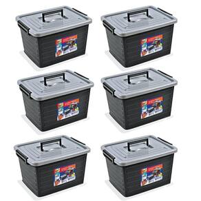 Kit 6 Caixas Organizadoras 50 Litros Preta Com Tampa E Rodas