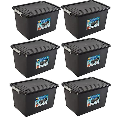 Kit 6 Caixas Organizadoras 56 Litros com Tampa e Trava Preta 25793PM Arqplast Caixa Organizadora 56 litros Com trava Esta prática e funcional caixa organizadora mantém organizados, protegidos e bem armazenados todos os Itens que sejam necessários. Ajuda a organizar o ambiente e economiza espaço. Com travas laterais, reforçada 100% reciclável, otima qualidade e serve para diversos ambientes. Capacidade: 56 Litros Medidas em cm: CxLxA : 58x40x35 Cm Aprox. 100% Reciclável Arqplast