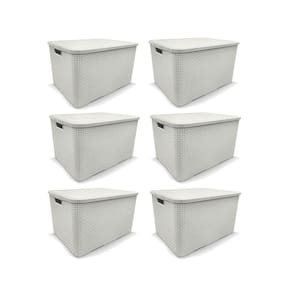 Kit 6 Caixas Organizadoras Rattan BRANCA 15 Litros Arqplast Kit 6 Caixas Organizadoras Rattan Branca 15 Litros ArqplastCaixa organizadora em plástico com tampa, que facilita a organização De guarda roupas e armários, por ser uma peça charmosa expor em Ambientes abertos dá um toque especial a decoração. Combina com vários ambientes, como cozinha, sala, banheiro e quarto. Material - Polipropileno DescriçãoDimensões:345 X 255 X 700mm (Corpo) 365 X 275 X 140mm (Tampa) (comprimento x largura x altura) medida do produtoDimensões: 345 X 260 X 180mm (comprimento x largura x altura)