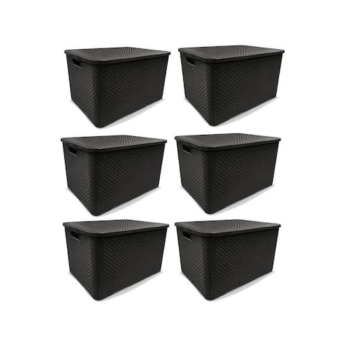 Kit 6 Caixas Organizadoras Rattan PRETA 15 Litros Arqplast Kit 6 Caixas Organizadoras Rattan PRETA 15 Litros ArqplastAixa organizadora em plástico com tampa, que facilita a organização De guarda roupas e armários, por ser uma peça charmosa expor em Ambientes abertos dá um toque especial a decoração. Combina com vários ambientes, como cozinha, sala, banheiro e quarto. Material - Polipropileno DescriçãoDimensões:345 X 255 X 700mm (Corpo) 365 X 275 X 140mm (Tampa) (comprimento x largura x altura) medida do produtoDimensões: 345 X 260 X 180mm (comprimento x largura x altura)