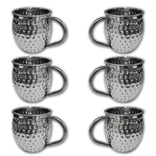 Kit 6 Canecas Moscow Mule Martelada Drink Premium 580Ml Inox