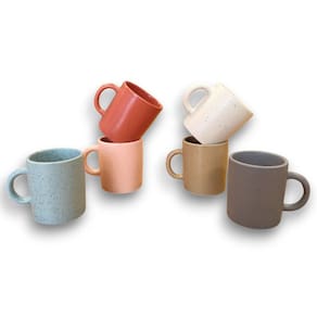 Contém: 6 Canecas. Material: Cerâmica. Medidas: 5,0cm (comprimento) x 5,0cm (largura) x 6,0cm (altura). Peso: 100g (peso total do conjunto de 6 canecas). Referência: AD0434.