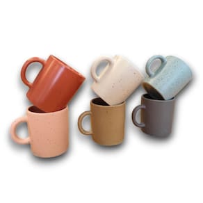 Qualidade e Durabilidade: Feitas de cerâmica resistente, elas oferecem um toque agradável e são feitas para durar, mantendo a beleza ao longo do tempo. kit 6 Canecas Orgânicas 90ml Design Rústico Cafe Cha.
