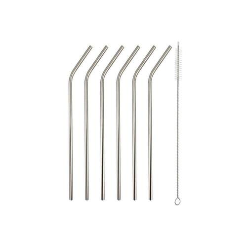 Kit 6 Canudo Curvo Inox Reutilizável Ecológico Fácil de Transportar Ideal para Bebidas em Geral e Escova