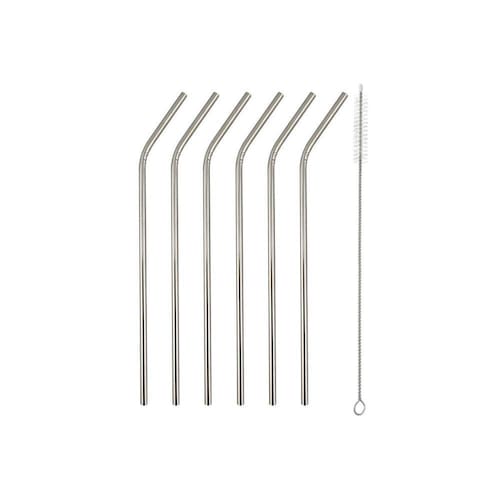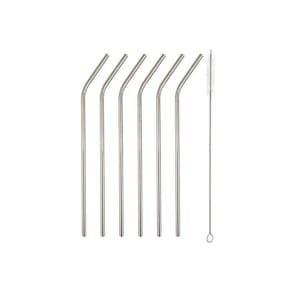 Kit 6 Canudo Curvo Inox Reutilizável Ecológico Fácil de Transportar Ideal para Bebidas em Geral e Escova