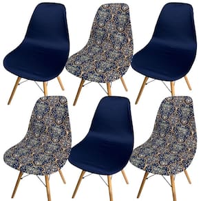 Kit 6 Capa de Cadeira Charles Eames Eiffel Pé Palito Malha Mista - Cor: 25 azul marinho