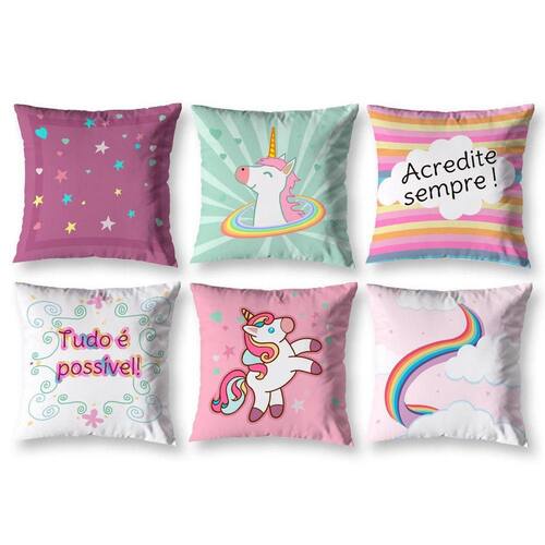 Kit 6 Capas De Almofada Infantil 40 X 40 Zíper Unicornio 1