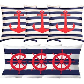 3 Capa De Almofada Timão De 50cm x 50cm;3 Capa De Almofada Âncora De 50cm x 50cm;