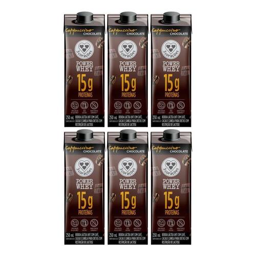 Kit 6 Bebida Láctea Power Whey Cappuccino Chocolate 250ml - 3 Corações