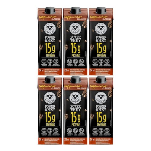 Kit 6 Bebida Láctea Power Whey Cappuccino Clássico 250ml - 3 Corações