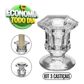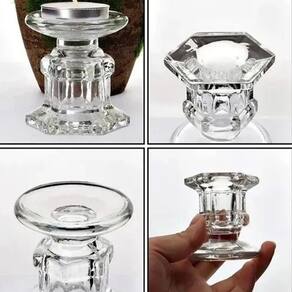 Kit 6 Castiçal Vidro Sextavado Dois Lados Enfeite Decoração