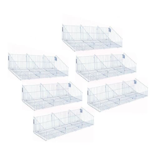6 unidades - cesto aramado para gôndolas - desmontável - cada cesto acompanha somente 2 separadores - cor: branco - marca: s.A gôndolas