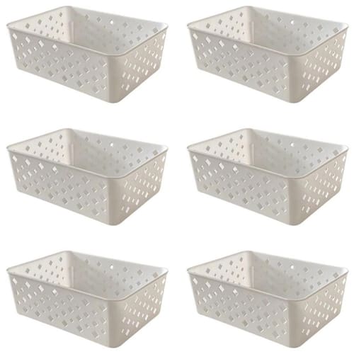 Kit 6 Cestos Organizadores Branco Multiuso Médio Empilhável Gaveta Armário Lavanderia 19x14x6,5 Somos a Tudo de Ferramentas, sua parceira de confiança desde 2013 no ramo do ecommerce