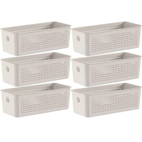 Garantia: 90 dias / Peso: 0,936kg / Cor predominante: bege / Ref: 7798140165323; Conteúdo: 6 cestos organizadores multiuso com perfurações Ou; Dimensões de cada cesto: 26cm (C) x 12,5cm (L) x 13cm (A); Material: polipropileno; Capacidade: 4,2l; Modelo: Flow.
