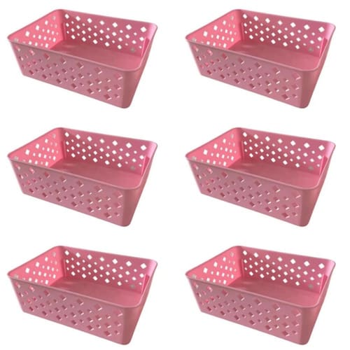 Kit 6 Cestos Organizadores Rosa Multiuso Médio Empilhável Gaveta Armário Lavanderia 19x14x6,5 Somos a Tudo de Ferramentas, sua parceira de confiança desde 2013 no ramo do ecommerce