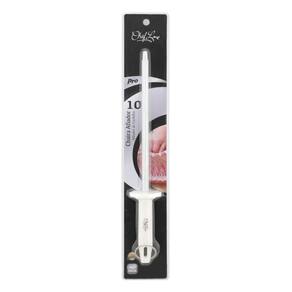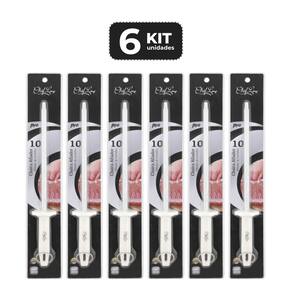 A chaira de 10 polegadas é produzida em aço carbono de alta qualidade, garantindo resistência e durabilidade. Possui cabo ergonômico em polipropileno, com acabamento em resina termoplástica injetada diretamente sobre o aço inox, proporcionando firmeza, higiene e maior vida útil. Conta ainda com furo passante que facilita o armazenamento, podendo ser pendurada com praticidade.