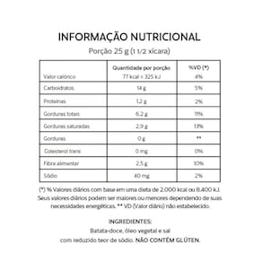 Batata-doce, óleo vegetal e sal com reduzido teor de sódio.