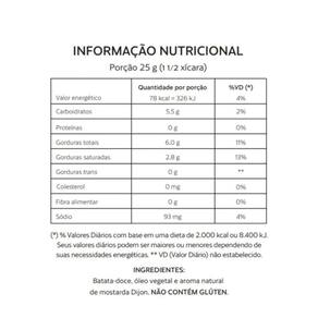 Batata-doce, óleo vegetal e aroma natural de mostarda dijon.