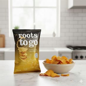 Raízes direto da fazenda para você - os chips de batata-doce roots to go combinam crocância irresistível com o sabor marcante da mostarda dijon, criando uma experiência única e deliciosa.