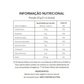 Batata-doce, óleo vegetal e aroma natural de mostarda dijon.