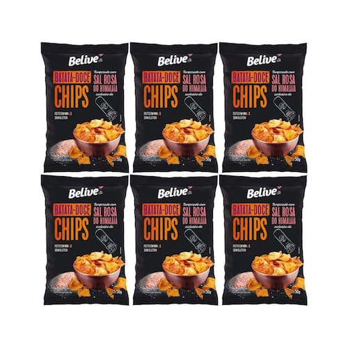 Kit 6 Chips de Batata Doce Temperados com Sal Rosa do Himalaia 50g - Belive - Grupo Rocha Saúde