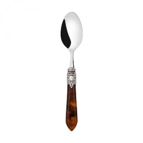 Para garantir uma mesa elegante e com espírito régio o jogo de colheres para café e chá da linha Oxford da Bugatti foi produzido em aço inox 18/10, com cabo de madrepérolaem acrílico enriquecido por um sofisticado anel com acabamento em prata antiga que lembra um nobre brasão.