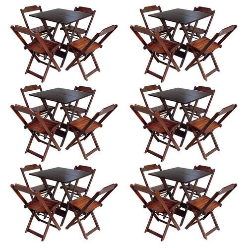 Kit 6 Conjuntos De Mesa Com 4 Cadeiras De Madeira Dobravel 70x70 Imbuia - Cor: Marrom