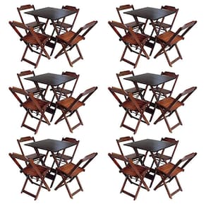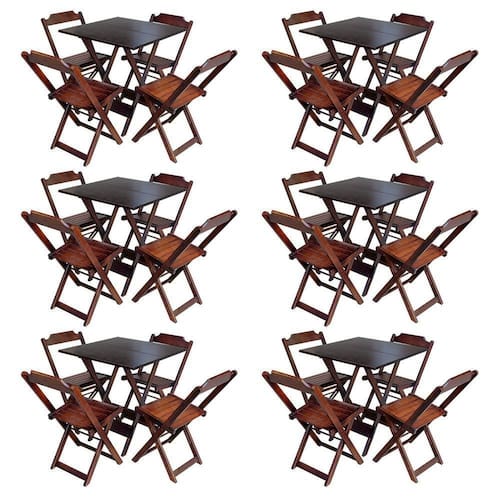 Kit 6 Conjuntos De Mesa Com 4 Cadeiras De Madeira Dobravel 70x70 Imbuia - Cor: Marrom