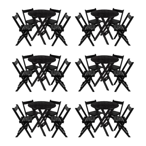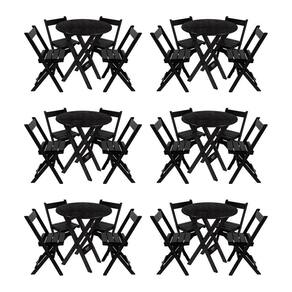 AS IMAGENS SÃO MERAMENTE ILUSTRATIVAS E PODEM SOFRER VARIAÇÕES DE COR E PEQUENOS DETALHES DE ACORDO COM O SEU MONITOR, ILUMINAÇÃO DO AMBIENTE E ATÉ MESMO A SUA PERCEPÇÃO VISUAL.Kit 6 Conjuntos Mesa Redondo 70cm DobrÃvel Com 4 Cadeiras Em Madeira MaciÃa - Preto