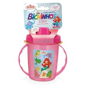 Copo Infantil Com Alças E Bico 320ML Bichinhos 6 Meses Rosa