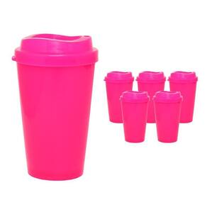 Kit 6 Copos Mug Rosa Neon 320Ml Plástico Premium