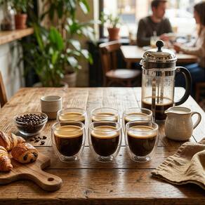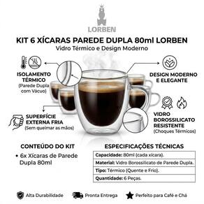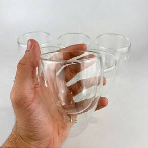 • Material: Vidro borossilicato de alta resistência • Capacidade: 80ml • Quantidade: 6 unidades • Tipo: Parede dupla com câmara de ar
