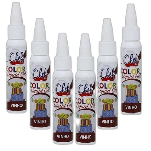 Kit 6 Corantes Liquido Gel Vinho 25G Iceberg 6 Corantes Liquido Gel Vinho 25g Iceberg Características do Produto: Corante Liquido Gel Ideal para aplicação em pasta americana, fondant, glacês e chantilly. Dosagem orientativa: -máximo 10g de corante para 1000g de produto final. Informações Adicionais: Peso Líquido: 25g. Ingredientes: Água, açúcar invertido, corantes artificiais azul brilhante e amarelo tartrazina, sorbato de potássio, goma xantana e goma guar. Não contém glúten. Não contém leite ou derivados. Medidas Aproximadas Da embalagem: -comprimento: 12 cm -diâmetro: 2,5 cm Marca: Não Informado