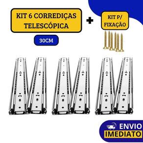 Kit 6 Corrediças Gaveta Telescópica Light 30cm Com Parafusos Kit 6 Corrediças Gaveta Trilho Telescópica Light Com Parafusos 30cm