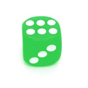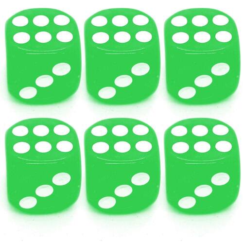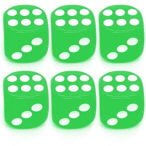 Kit 6 Dados de 6 Faces Translúcido Verde 14mm, normalmente utilizado na Umbanda e no Candomblé pela falange da Malandragem, Zé Pilintra e Maria Navalha. Salve a Malandragem!