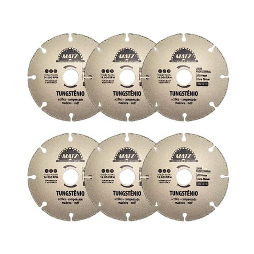 Disco de corte segmentado em tungstênio, ideal para cortes secos em madeira, MDF, compensado e acrílico. Seus segmentos de carboneto de tungstênio oferecem alta resistência ao desgaste, proporcionando cortes rápidos, precisos e com acabamento limpo. Perfeito para marcenaria, construção e projetos que exigem precisão e durabilidade em materiais diversos.