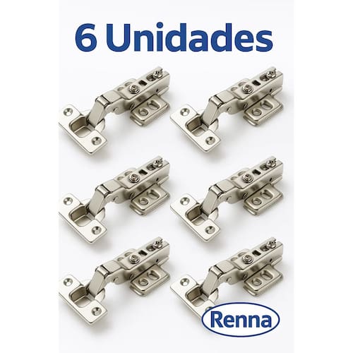 Kit 6 Dobradiças Curva com Pistão Inox Renna – Amortecimento Suave e Alta Durabilidade (Kit com 6 unidades)