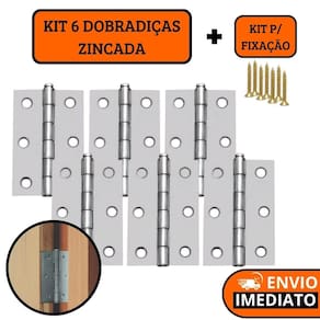 Kit 6 dobradiças zincada para porta de madeira 7,6cm + parafusos para fixação