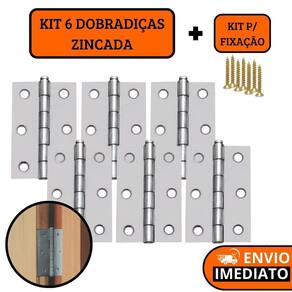 Kit 6 dobradiças zincada para porta de madeira 8,9cm + parafusos para fixação