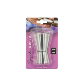 O dosador inox duplo de bebidas medidor 50/25ml é um utensílio de bar e cozinha muito útil para dosar com precisão bebidas destiladas, xaropes e outros líquidos utilizados em coquetéis e bebidas mistas.