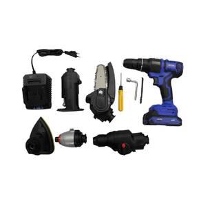 Conteúdo Embalagem: corpo intercambiável, 6 opções de ferramentas: Serra tico-tico/ Lixadeira/ Parafusadeira de torque/ Parafusadeira/ Serra de corte/ Martelete, maleta, bateria e carregador de bateria.